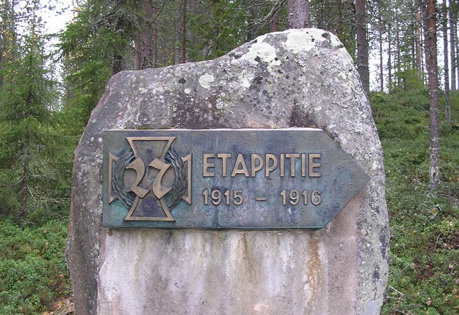 Notice the iron cross with "27", the battalion insignia. The same can be found on signs in and around Tornio denoting the illegal border-crossing paths of the volunteers, like this one north of Tornio in Jäkälänkangas, about 8 km west of Muurola: